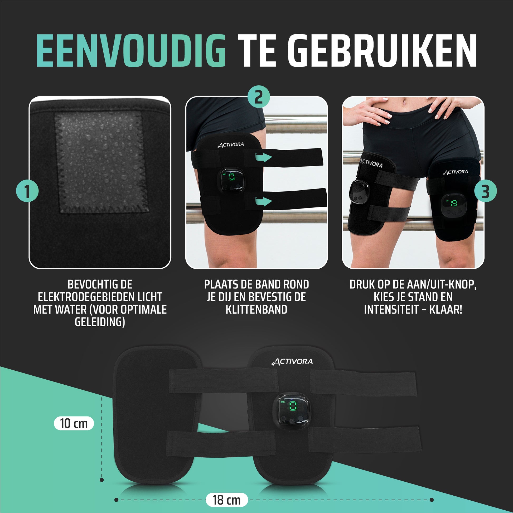 De Activora EMS-Beentrainer is bedoeld voor zowel beginnende als ervaren gebruikers die hun bovenbenen willen stimuleren met eventueel traditionele fitnessoefeningen.